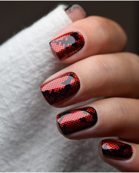 Mit Burgundy Lace bringst du einen auffälligen Statement-Look auf deine Nägel. Die Kombination aus schwarzer Basis und burgunderrotem Spitzenmuster sorgt für ein Design, das edgy, modern und absolut einzigartig ist – perfekt für alle, die Lust auf einen starken Auftritt haben.