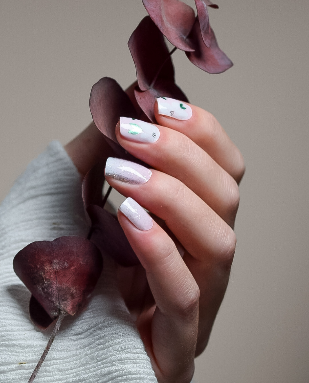 • 20 selbstklebende Nagelfolien in unterschiedlicher Größe