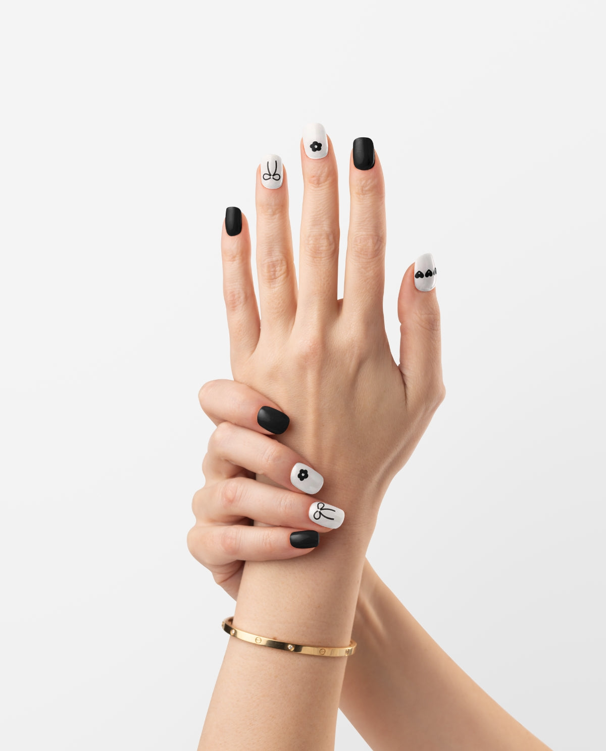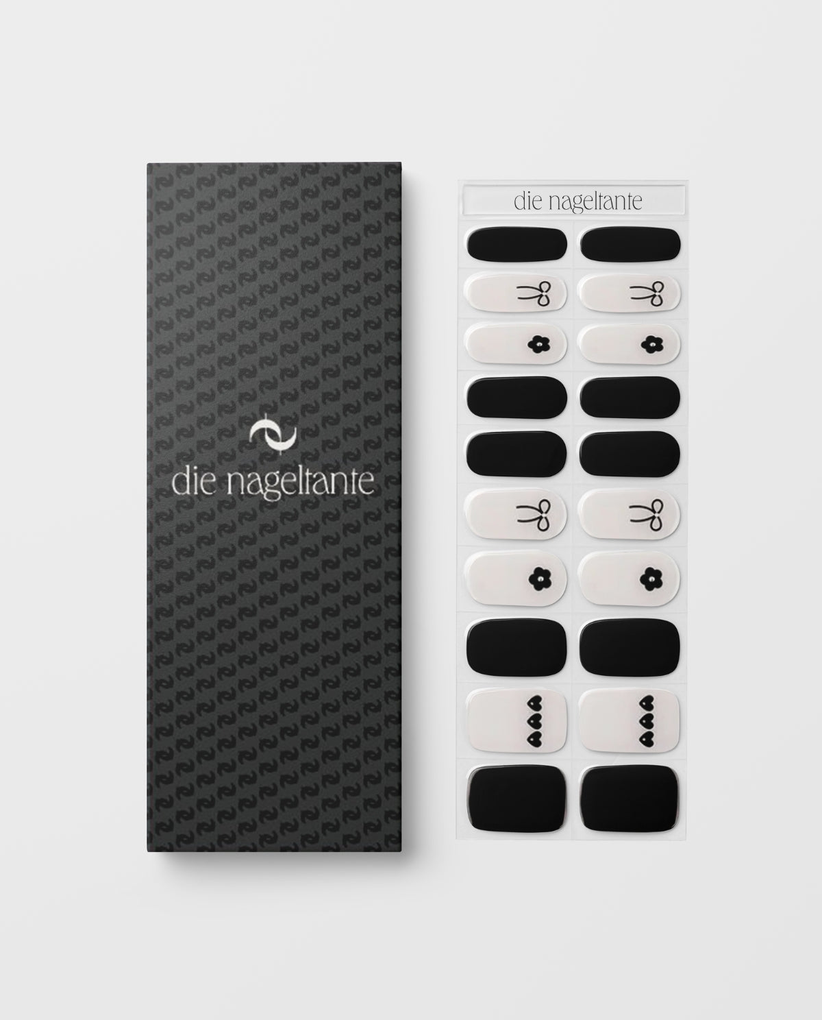 Die UV Gel Wraps „Black Bow Affair“ vereinen Eleganz und Kreativität in einem einzigartigen Naildesign. Schwarze und weiße Wraps werden durch feine Schleifen- und Blumenmotive ergänzt – perfekt für alle, die ihre Nägel zum Hingucker machen wollen. Der starke Kontrast macht das Design modern und classy zugleich.